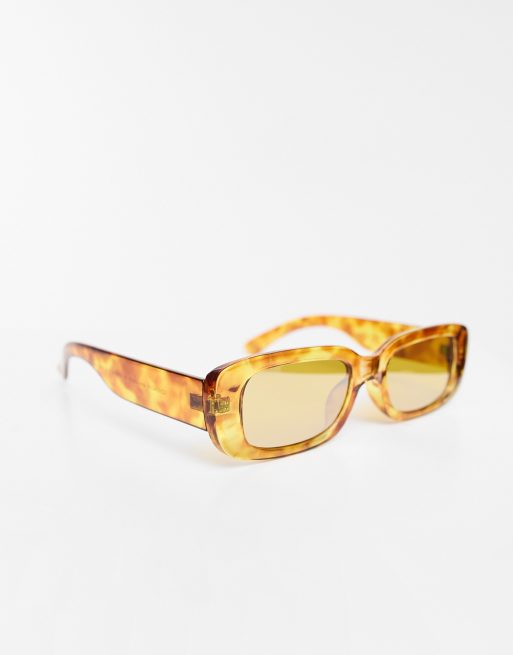 ASOS DESIGN mid rectangle sunglasses with mirror lens in tortoiseshell