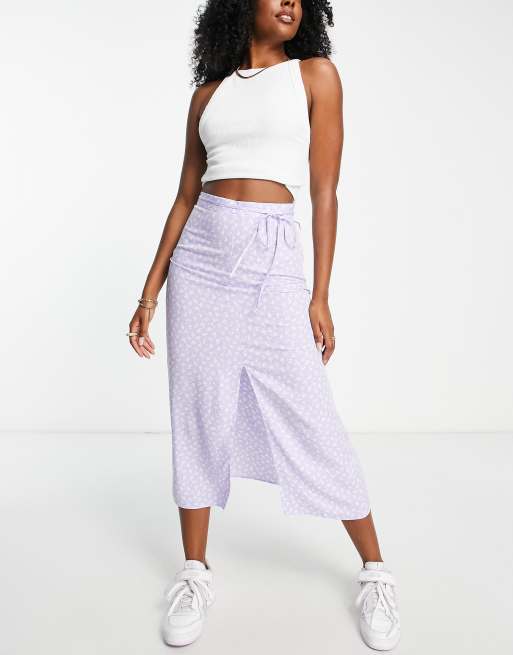 ASOS DESIGN midi slip skirt with front split in lilac floral print