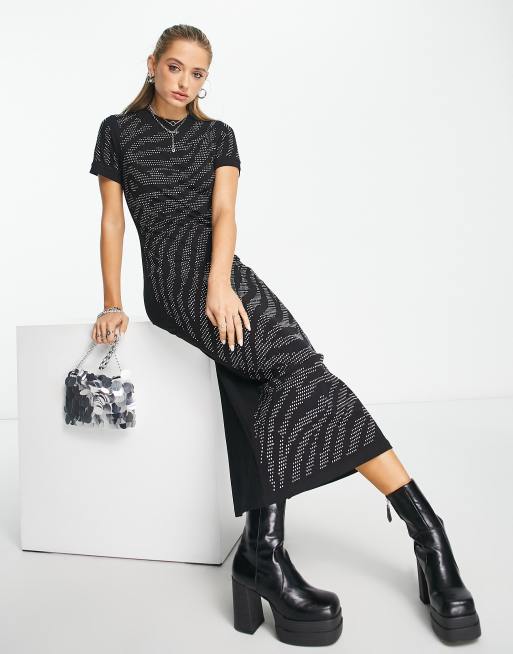 ASOS DESIGN midi t-shirt dress with silver tiger embellishment in black