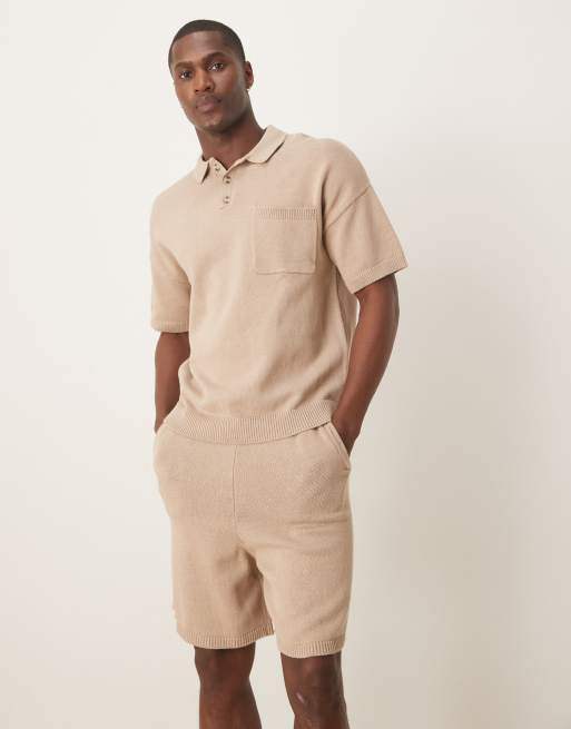 ASOS DESIGN midweight knitted cotton shorts in stone (part of a set)