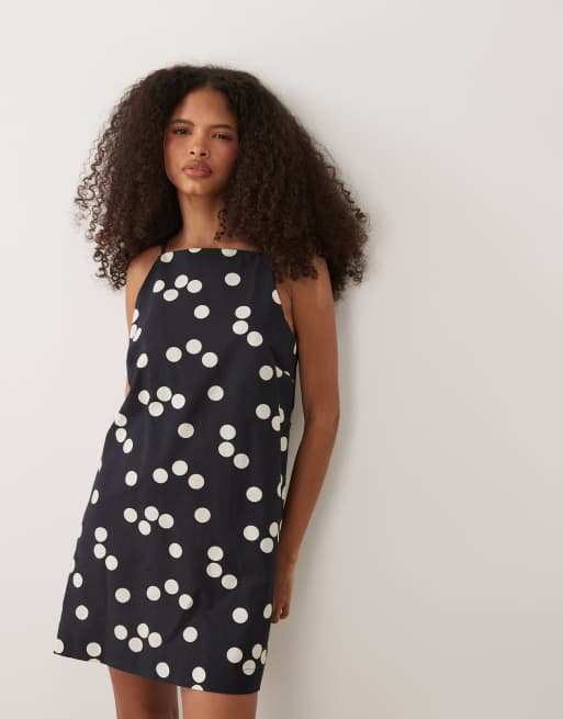 ASOS DESIGN mini shift linen blend dress in polka dot