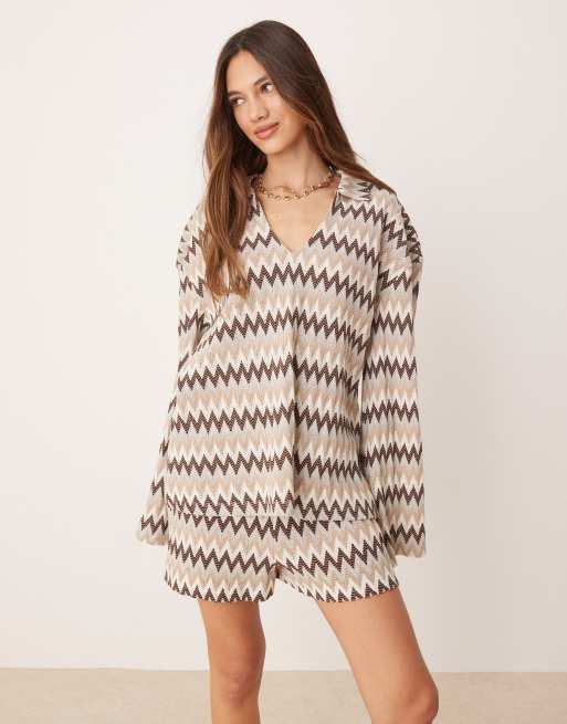 ASOS DESIGN mini shorts in brown chevron stripe (part of a set)