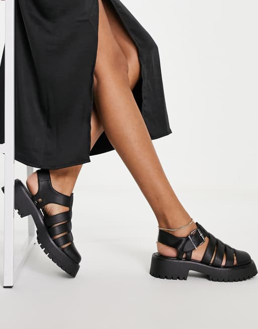 ASOS DESIGN Mission chunky fisherman flat shoes in black