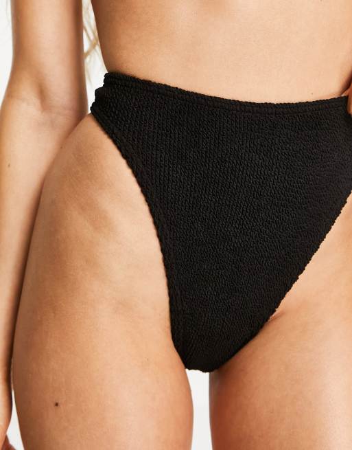 ASOS DESIGN mix and match crinkle high leg high- waist lingerie thong bikini bottom in black