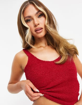 ASOS DESIGN mix and match lounge fluffy set in red