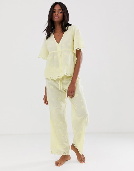 ASOS DESIGN mix & match broderie pyjama smock top & pant