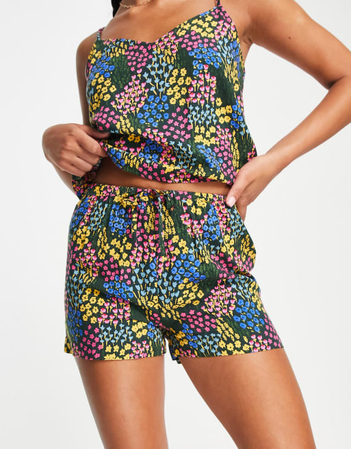ASOS DESIGN mix & match modal ditsy floral pyjama set in black