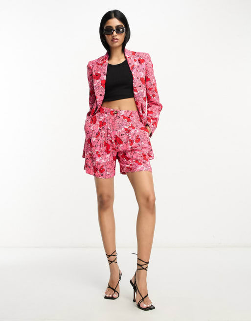 ASOS DESIGN Mix & Match poppy printed suit with linen in pink