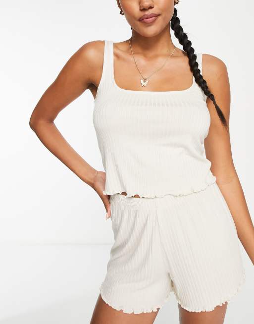 ASOS DESIGN mix & match rib pyjama singlet with lettuce hem in oatmeal