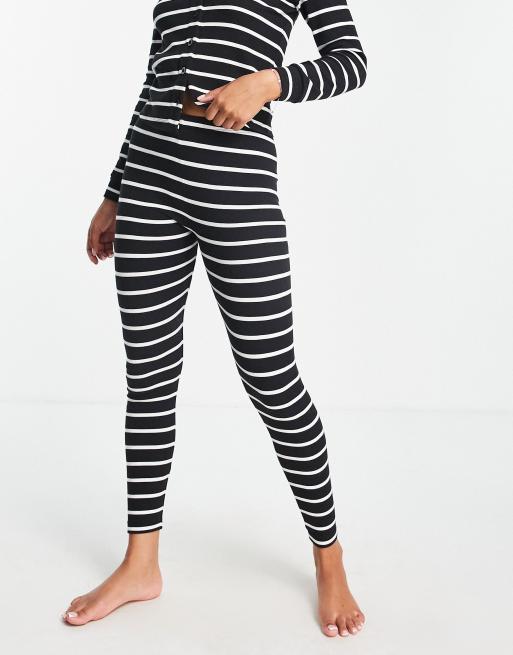 ASOS DESIGN mix & match rib stripe pyjama leggings in black & white