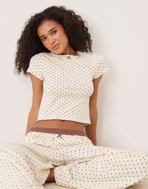 ASOS DESIGN mix & match short sleeve pyjama top in cream & brown spot print