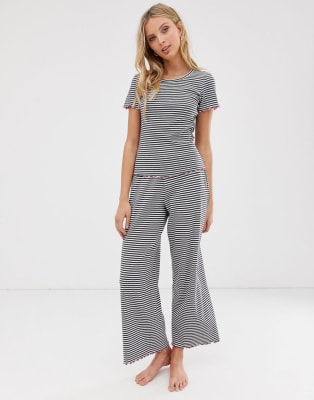 ASOS DESIGN mix & match stripe lettuce hem pyjama t-shirt and pant