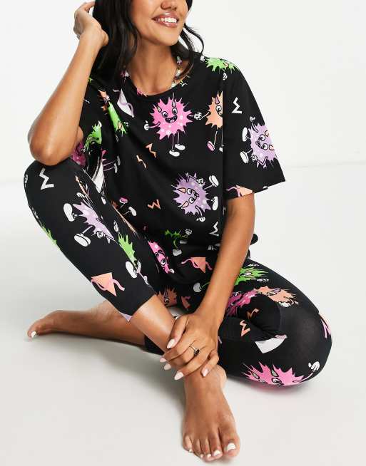 ASOS DESIGN monsters oversized tee & leggings pyjama set in black