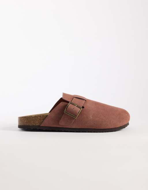 ASOS DESIGN mule sandals with cork sole in clay bonded suede