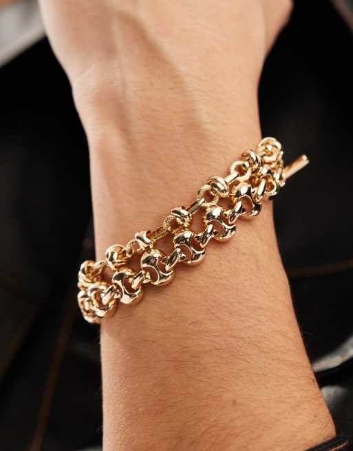 ASOS DESIGN multirow bracelet with chunky chain t bar detail in gold tone