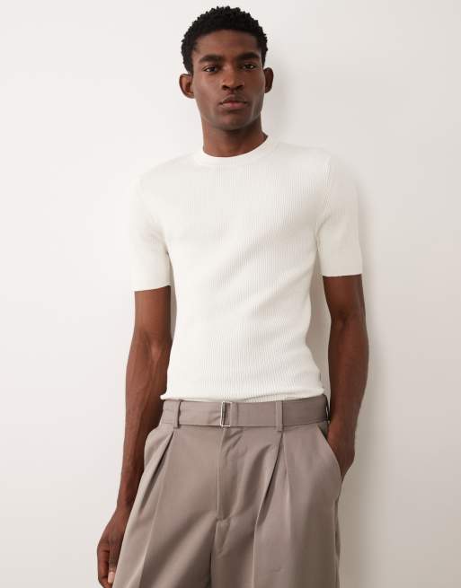 ASOS DESIGN muscle fit cotton-blend knitted crew neck t-shirt in off white