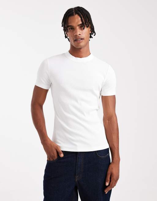 ASOS DESIGN muscle fit high neck rib t-shirt in white