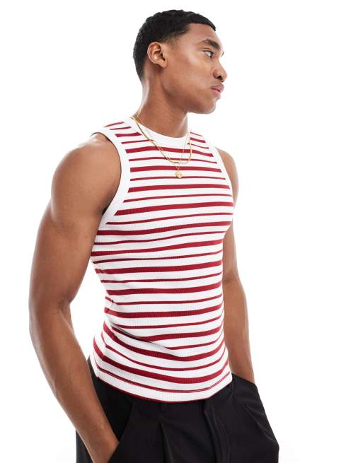 ASOS DESIGN muscle fit singlet in red and white stripe