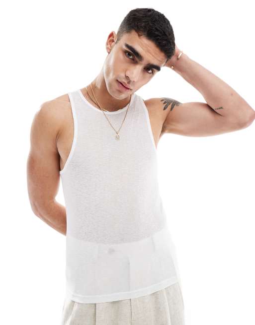 ASOS DESIGN muscle fit singlet in white in sheer textured fabric