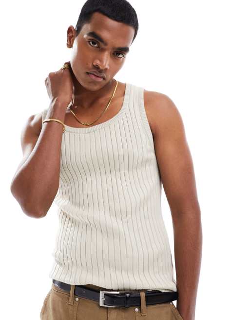 ASOS DESIGN muscle lightweight knitted rib singlet in stone