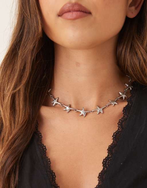 ASOS DESIGN necklace in starfish design in brushed silver tone