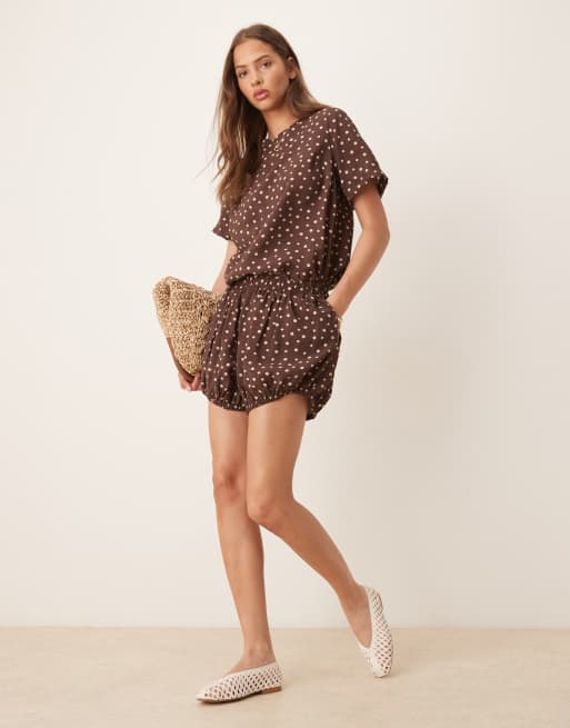 ASOS DESIGN open back tie top and shorts set in brown spot print