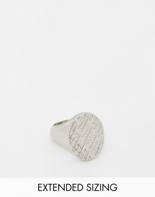 ASOS DESIGN oval signet ring with lightning bolt emboss in silver tone