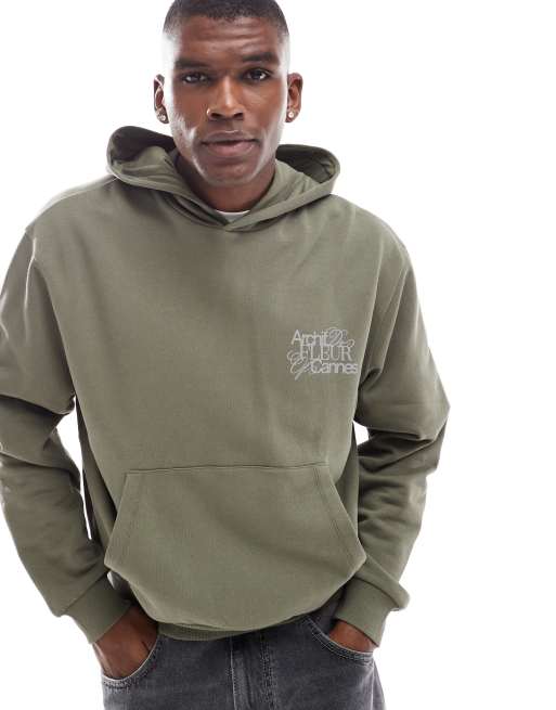 ASOS DESIGN oversised boxy hoodie with print in khaki