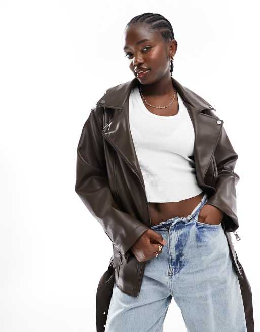 ASOS DESIGN oversized biker jacket in rich chocolate