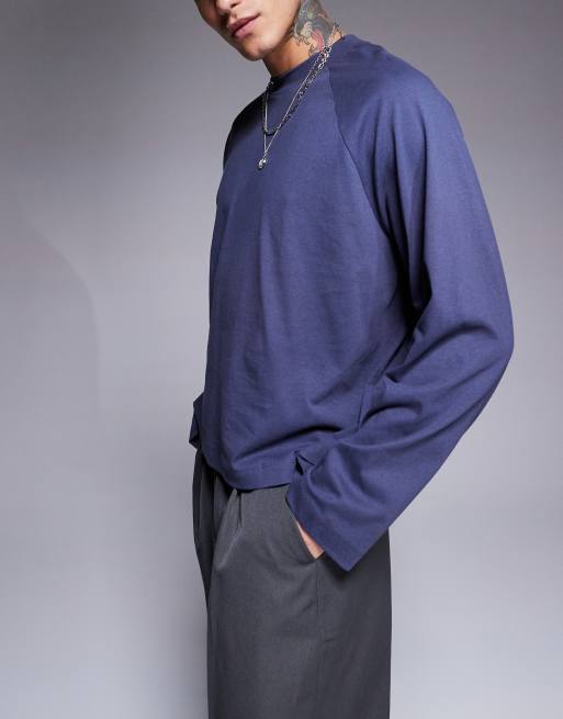 ASOS DESIGN oversized boxy long sleeve raglan t-shirt in navy