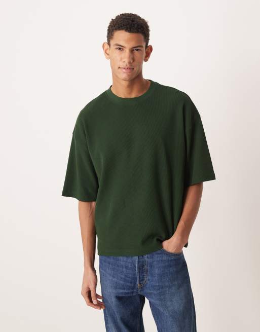 ASOS DESIGN oversized boxy t-shirt in dark green waffle