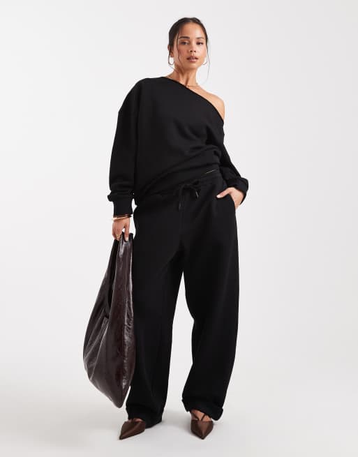 ASOS DESIGN oversized brushback trackies with turnback hem detail in black