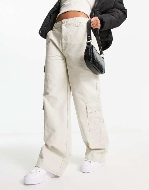 ASOS DESIGN oversized cargo pants with multi pocket in stone