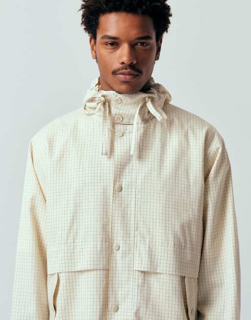 ASOS DESIGN oversized check windbreaker jacket in beige