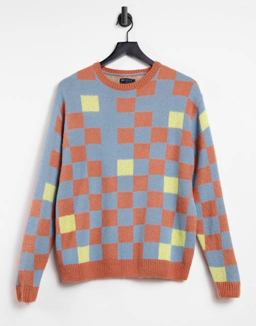 ASOS DESIGN oversized checkerboard jumper in multi colour