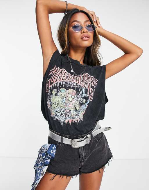 ASOS DESIGN oversized cut off tank with Guns N' Roses licensed graphic in wash