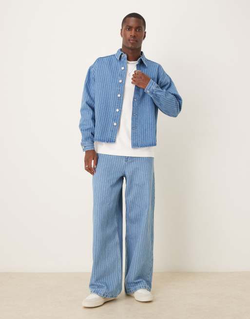 ASOS DESIGN oversized denim overshirt set with super baggy jeans in stripe