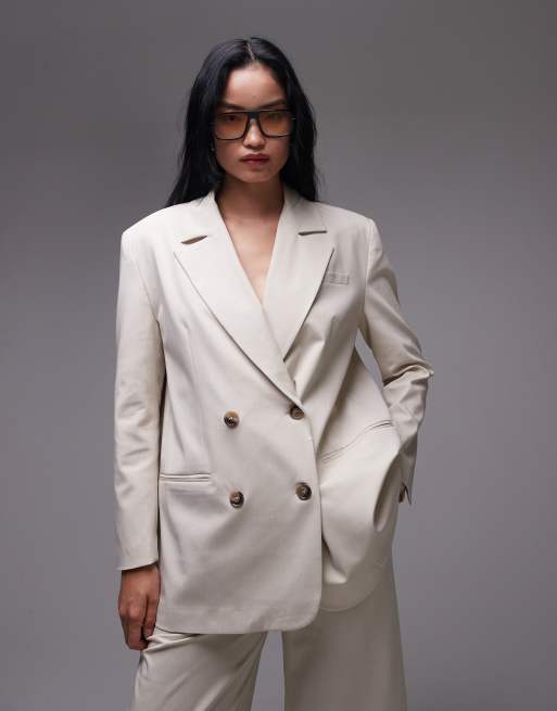 ASOS DESIGN oversized double breasted blazer in neutral (part of a set)