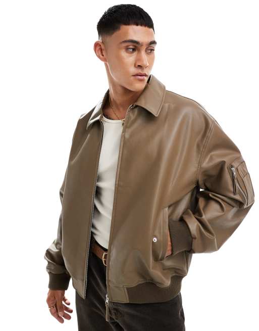 ASOS DESIGN oversized faux leather bomber jacket in brown