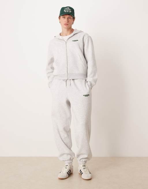 ASOS DESIGN oversized fit trackies with print detail in ice marl