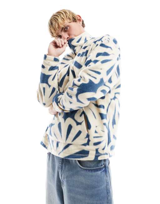 ASOS DESIGN oversized half zip sweatshirt with flower all over print in polar fleece