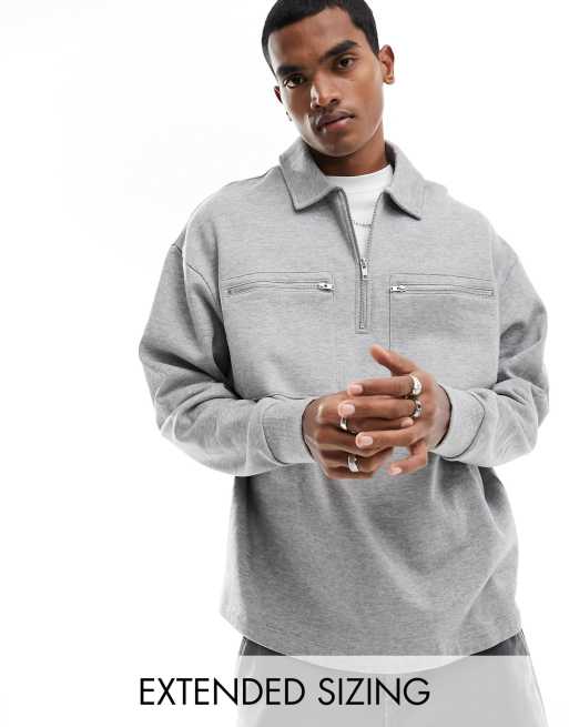 ASOS DESIGN oversized half zip sweatshirt with pockets in grey marl
