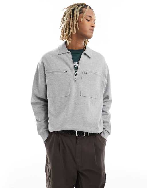 ASOS DESIGN oversized half zip sweatshirt with pockets in grey marl