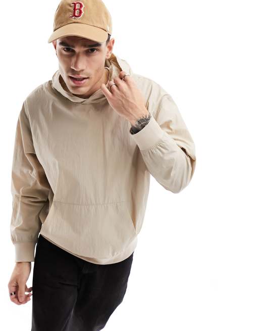 ASOS DESIGN oversized hoodie in beige in woven fabric