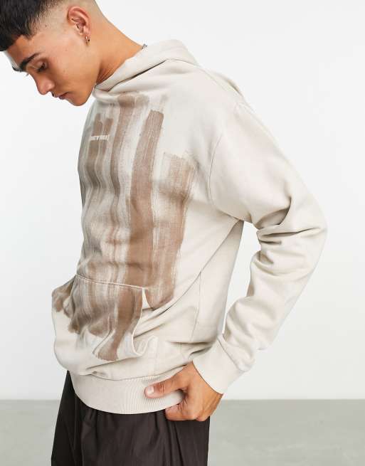 ASOS DESIGN oversized hoodie in beige with distressed wash effect and text print