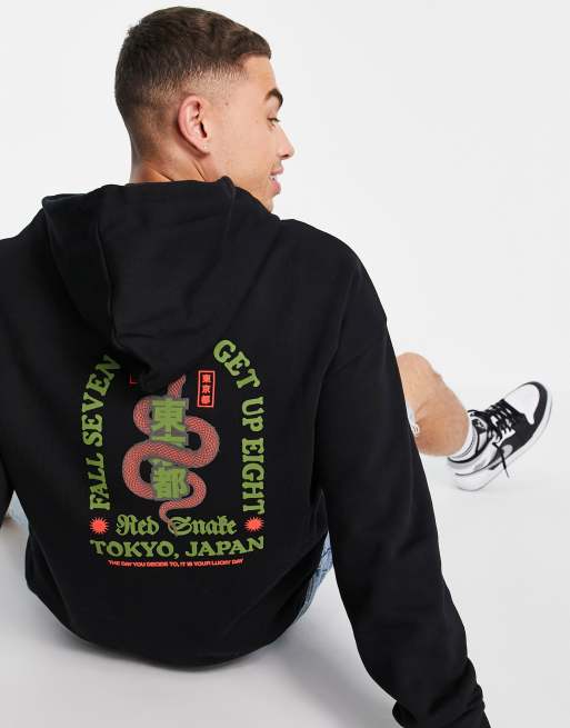ASOS DESIGN oversized hoodie in black with Tokyo snake back print - BLACK