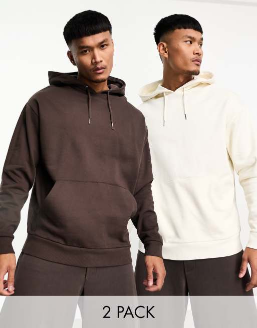 ASOS DESIGN oversized hoodie in dark brown/ soft white 2 pack