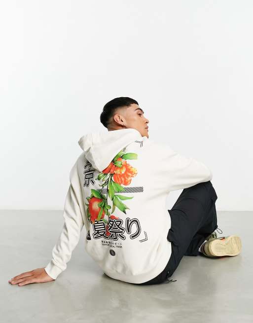 ASOS DESIGN oversized hoodie in off white with photographic fruit back and chest print