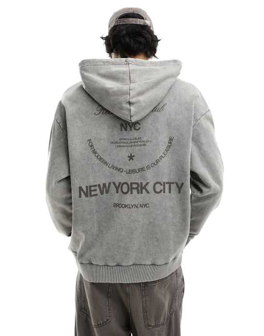 ASOS DESIGN oversized hoodie in washed grey with front and back city print