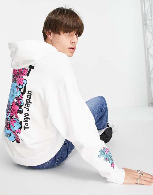 ASOS DESIGN oversized hoodie in white with multi placement koi prints